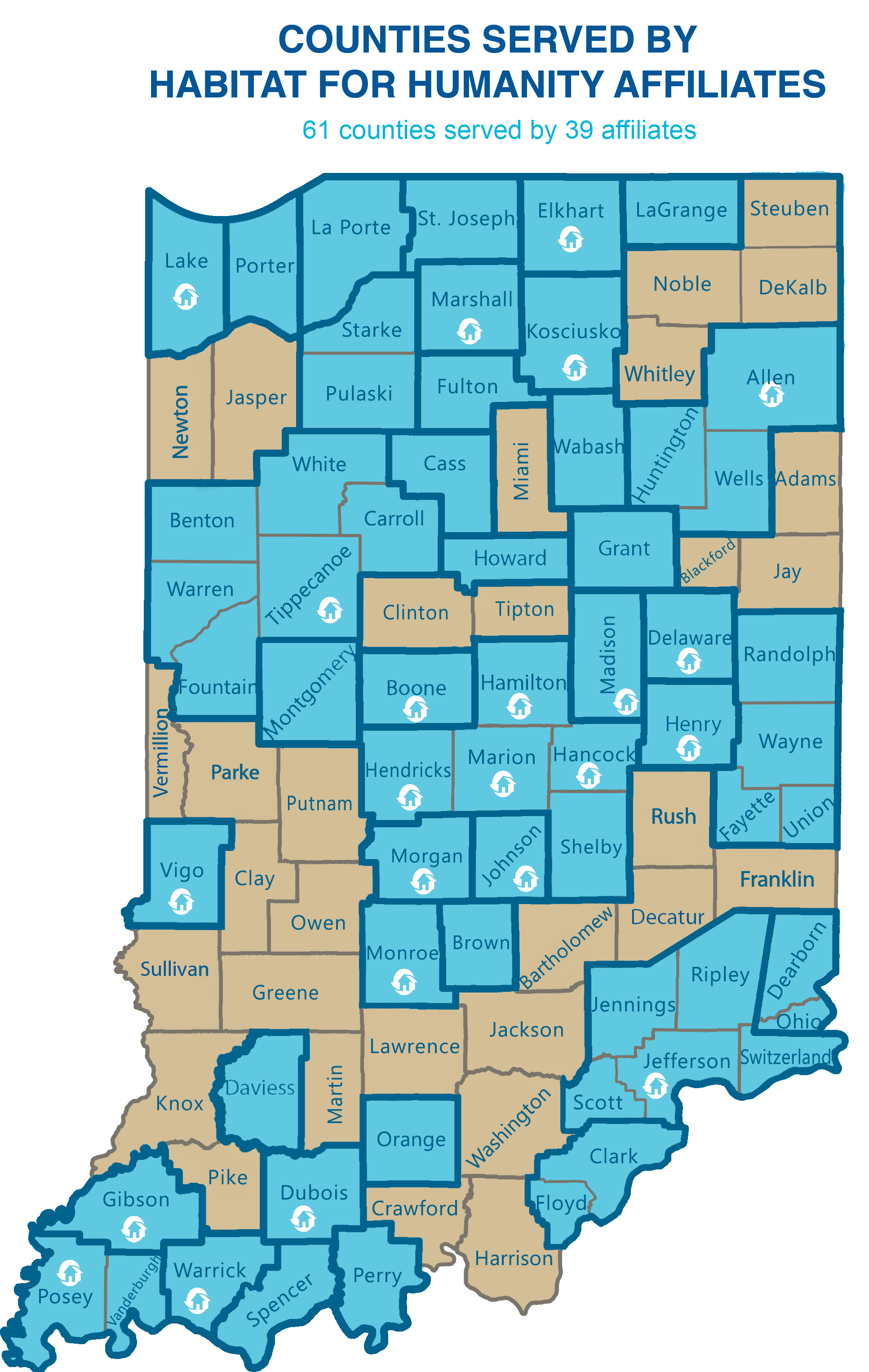 Habitat Indiana is a membership organization for Habitat for Humanity affiliates across the state of Indiana. We are proud to say we currently have 100% membership across the state for the first time in the organization's history!